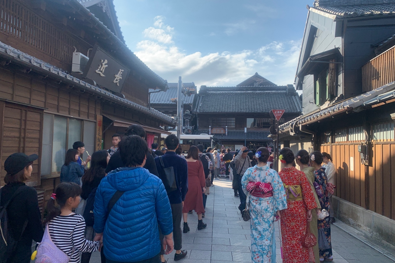 以前はアジア系の観光客が浴衣を着て歩く姿がよく見られましたが、最近は、日本人観光客も浴衣で時の鐘周辺を観光する人が増えていました。