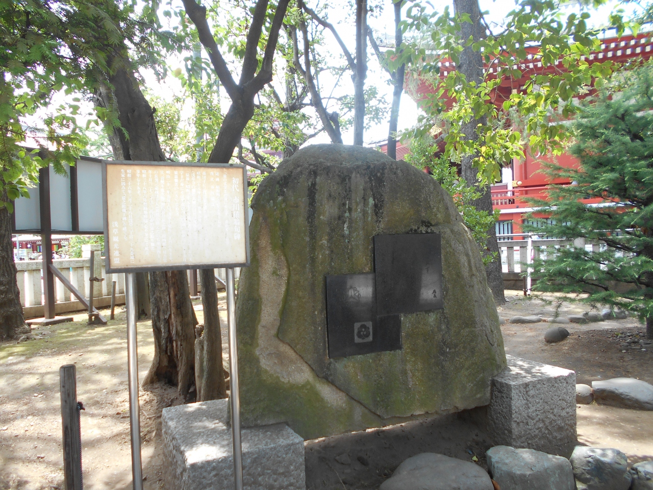 三社権現様で親しまれる浅草神社の鳥居を入った直ぐ左に建つ石碑で歌舞伎役者初代市川猿翁の句が刻まれています。半円形の石に刻まれ横に由緒版がありますが字が薄れて読みづらいです。明治から戦後にかけて活躍した歌舞伎役者だそうです。境内左側にその他多くの石碑が建っています。