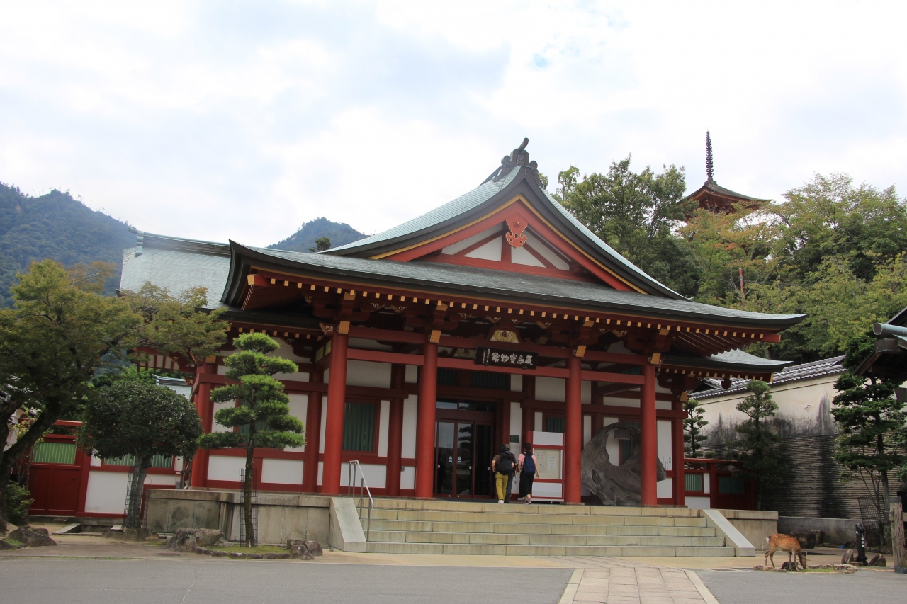 建物は、コンクリ-トに漆が塗られた珍しい建物です。厳島神社の社殿とも調和している点が良かったです。