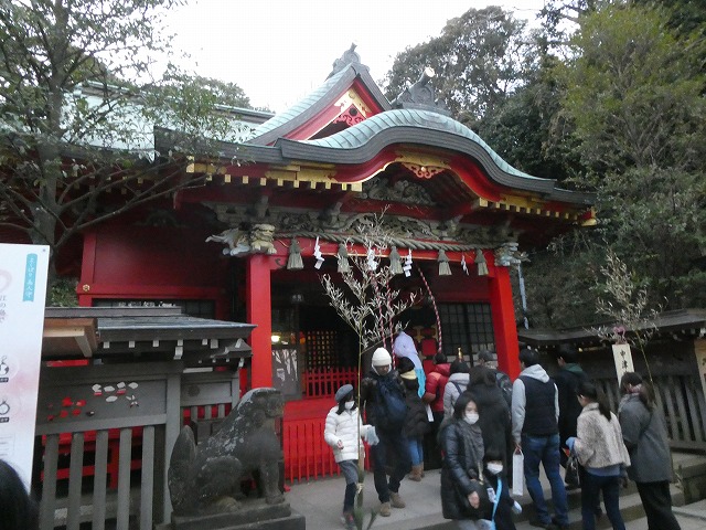 弁天橋で江ノ島に渡ると、すぐに江ノ島神社の辺津宮に到着しますが、島内では中津宮、奥津宮とお宮が続いていきます。今回は渡船のべんてん丸で江ノ島入りしたため、奥津宮から逆のコースでたどります。奥津宮からしばらく歩くと、中津宮に到着しました。結構、立派な建物ですが、大半の観光客は辺津宮で終わりになるので、大きな神社の割には参拝客少なめという雰囲気です。五代将軍・徳川綱吉が元禄二年(1689年)に、本殿・幣殿・拝殿からなる権現造りの社殿が再建。1996年、全面改修が行われました。元の建物の構造がどれぐらい残っているのかは不明です。