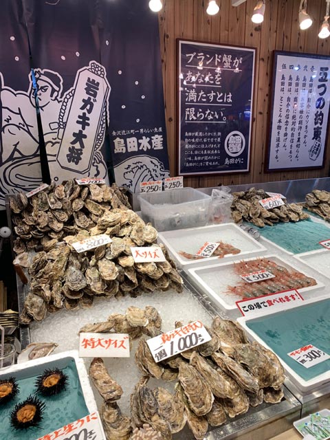 海鮮丼やお寿司も良いが鮮魚店の店先で食べる牡蠣は絶品