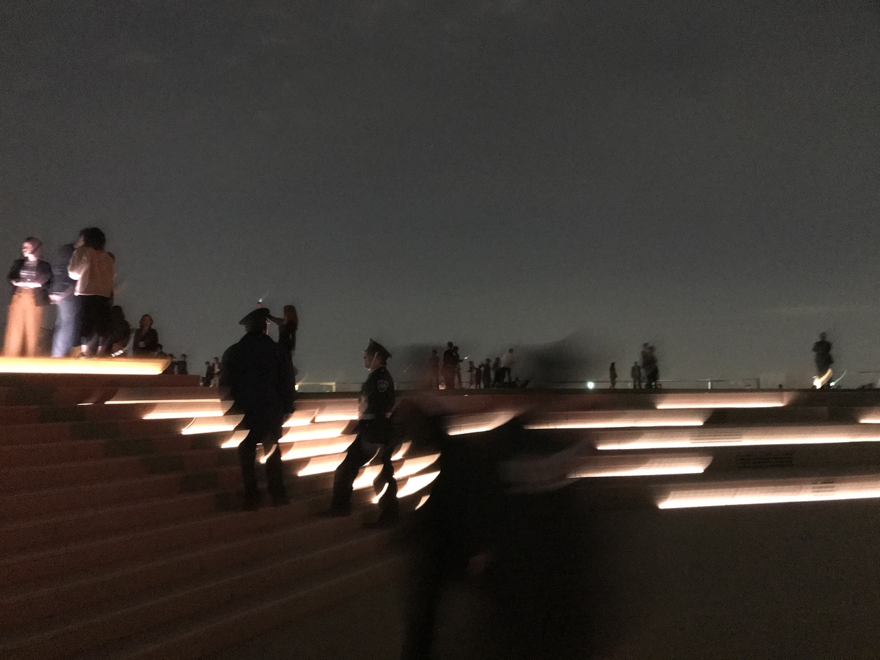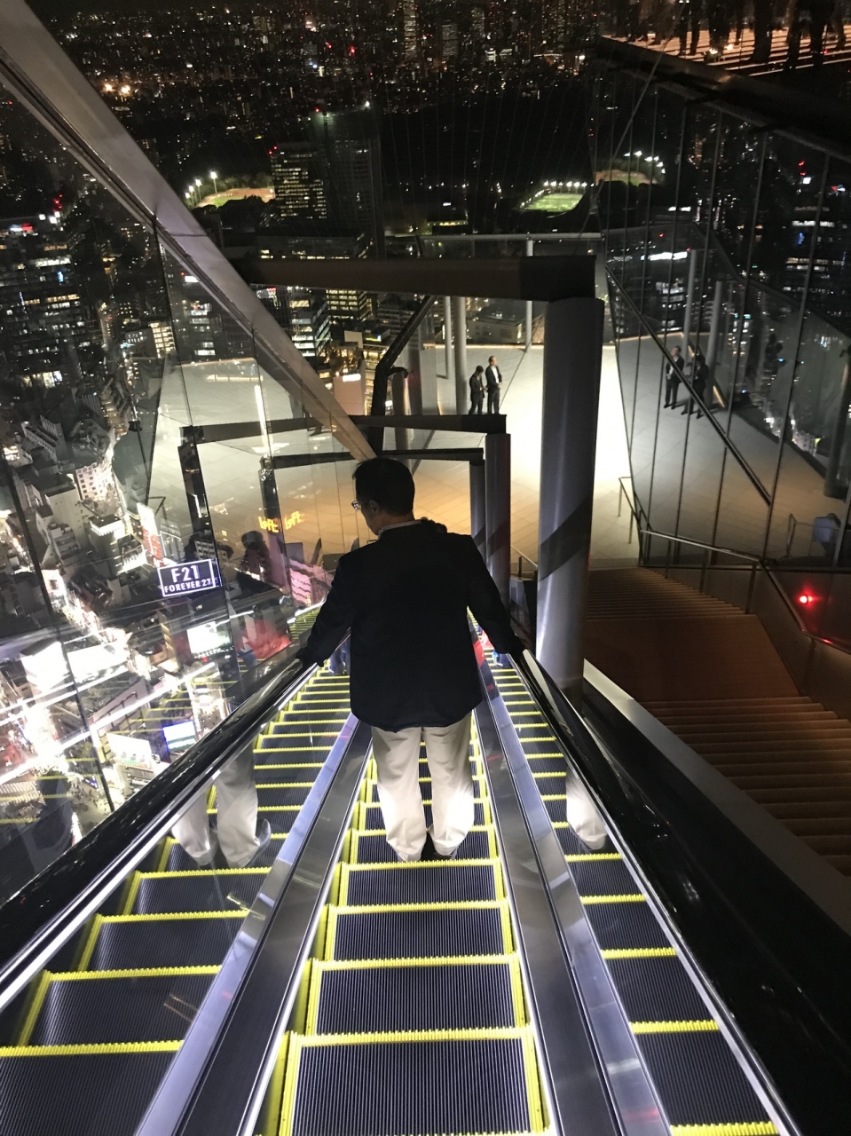 外にでたら、エスカレーターがありさらに上に行けます。こんな高いところでエスカレーターに乗ることはないので、スリルがあります。
