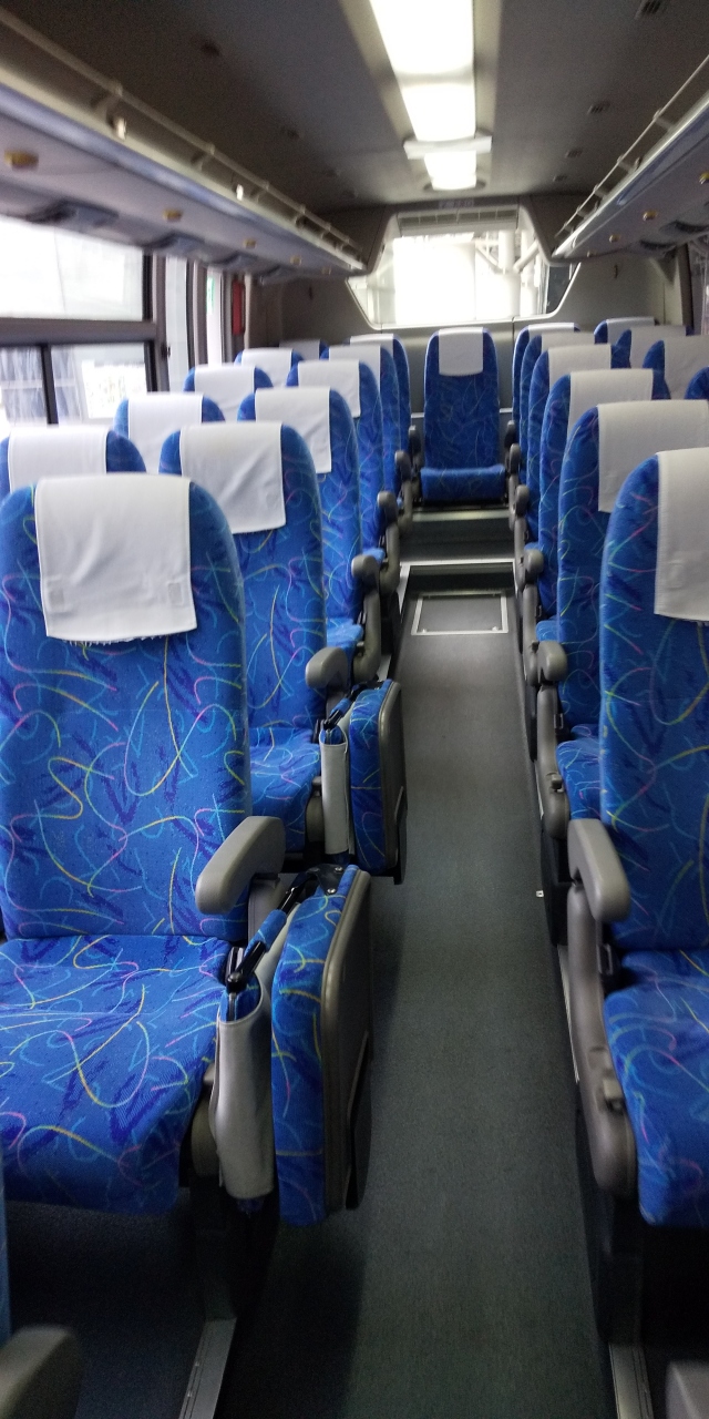 大型の観光バスなので乗り心地もよく大きな荷物はトランクに預かってくれるからありがたい。新幹線側からの南口からでるので路線バスとは反対側になる。スイカなどにも対応しているから小銭がいらない