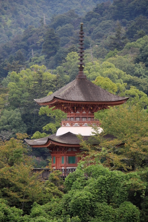 多宝塔には大元公園からあせび歩道を上って行きました。あせび歩道の途中から視界が開け綺麗に多宝塔が綺麗に見られるところがありました。周りは桜の木が多いので、桜の咲く時期はもっと綺麗に見られると思われました。多宝塔の近くでは、周りの木々でかえって多宝塔は隠れてしまい良く見えません。その代り、瀬戸内海や五重塔などの景色を見られる点が良かったです。