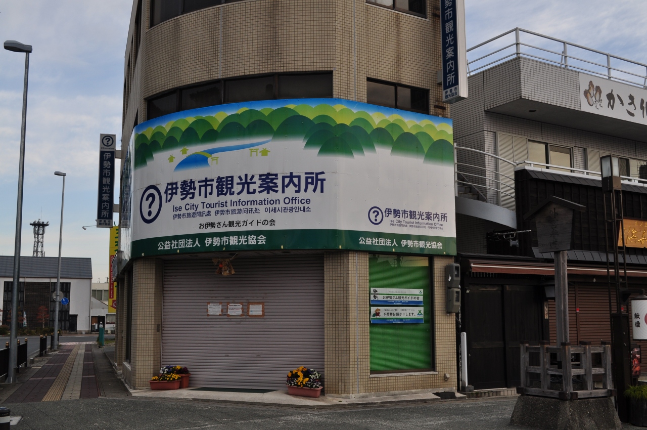 外宮前観光案内所は、参宮線伊勢市駅南口より外宮へと続く参道をまっすぐ歩いて行った先の、外宮前交差点のそばにある観光案内所です。開いていれば周辺のマップなどをいただこうと思っていたのですが、残念ながら外宮に着いたのが朝の7時頃ということでまだオープンしていませんでした。調べたところ、8:30~17:00までの利用でした。手荷物預かりなどもやっているようなので、外宮参拝には便利な施設ですね。