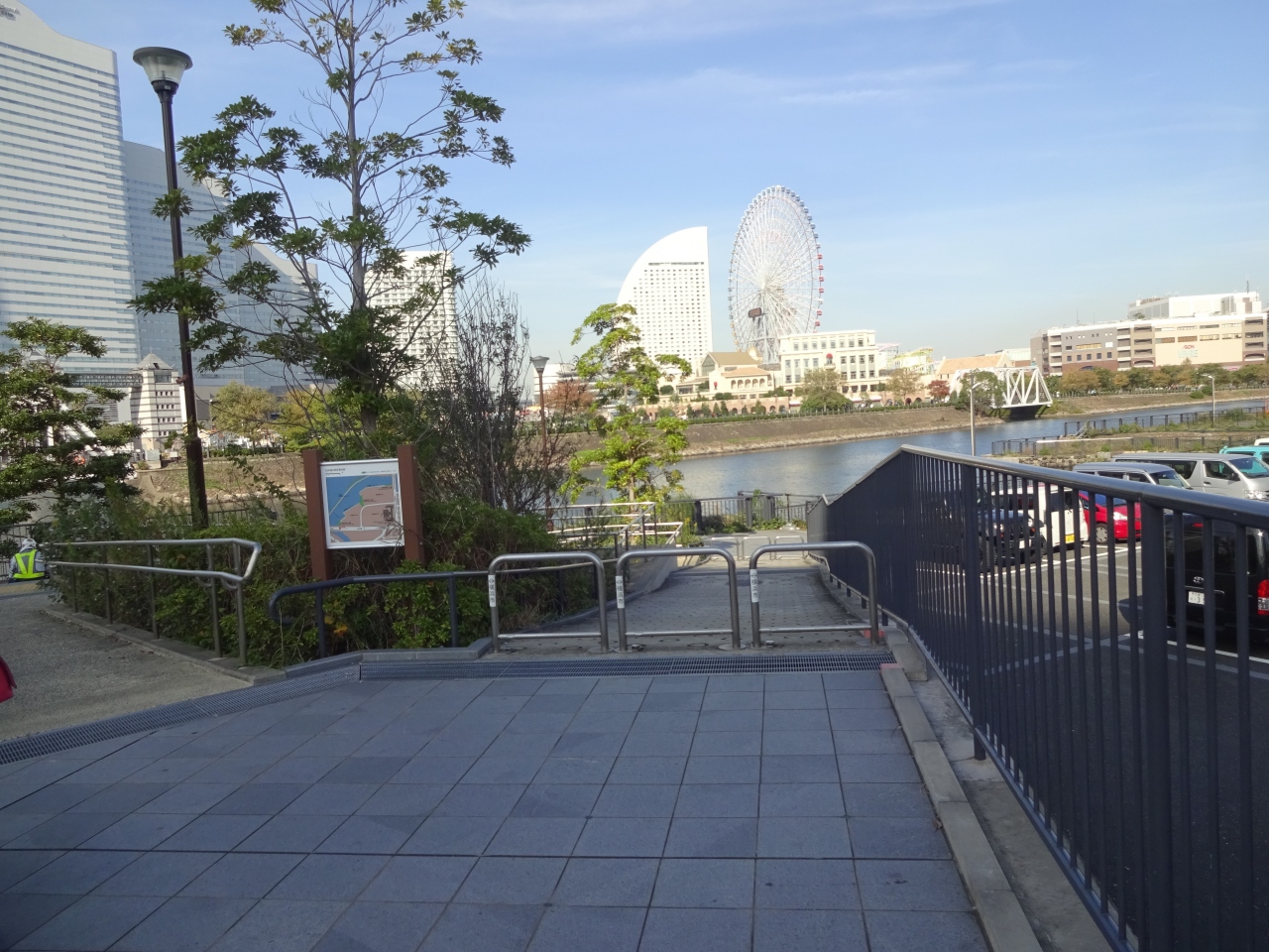 みなとみらい大通りの北仲橋を渡るとすぐ水辺に添って公園スペースが有り増した。