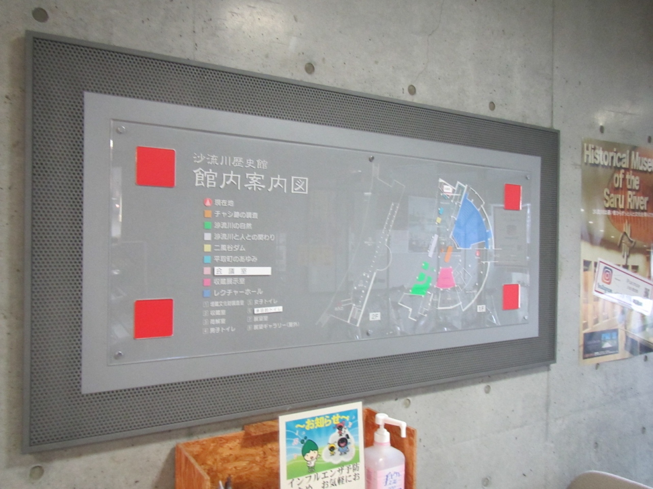 休日に二風谷ダムの管理事務所を訪れたところ閉まっていて、沙流川歴史館の方で二風谷ダムのダムカードを配付しているとの案内がされていました。