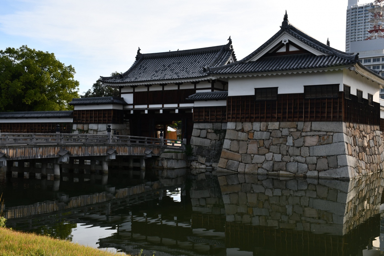毛利家が築いたお城ですが、元和年間に浅野家が入城して、ちょうど四百年だそうです。本丸は原爆で倒壊して、再建されています。今は城跡の隅っこに天守閣が建っているような具合ですが、本来の縄張りはもっともっと広かったのでしょう。縄張りの南に建っている、立派な御門です。