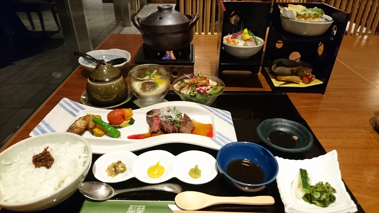 ブラッサム大分ホテルの朝食ビュッフェレストランですが、夕食時には和食のレストランとして営業しています。隣接する駅ビルの屋上庭園を見ながらゆっくりとお食事を楽しめます。宿泊者限定のセットメニューがあります。また、宿泊者にはドリンクサービスがあります。