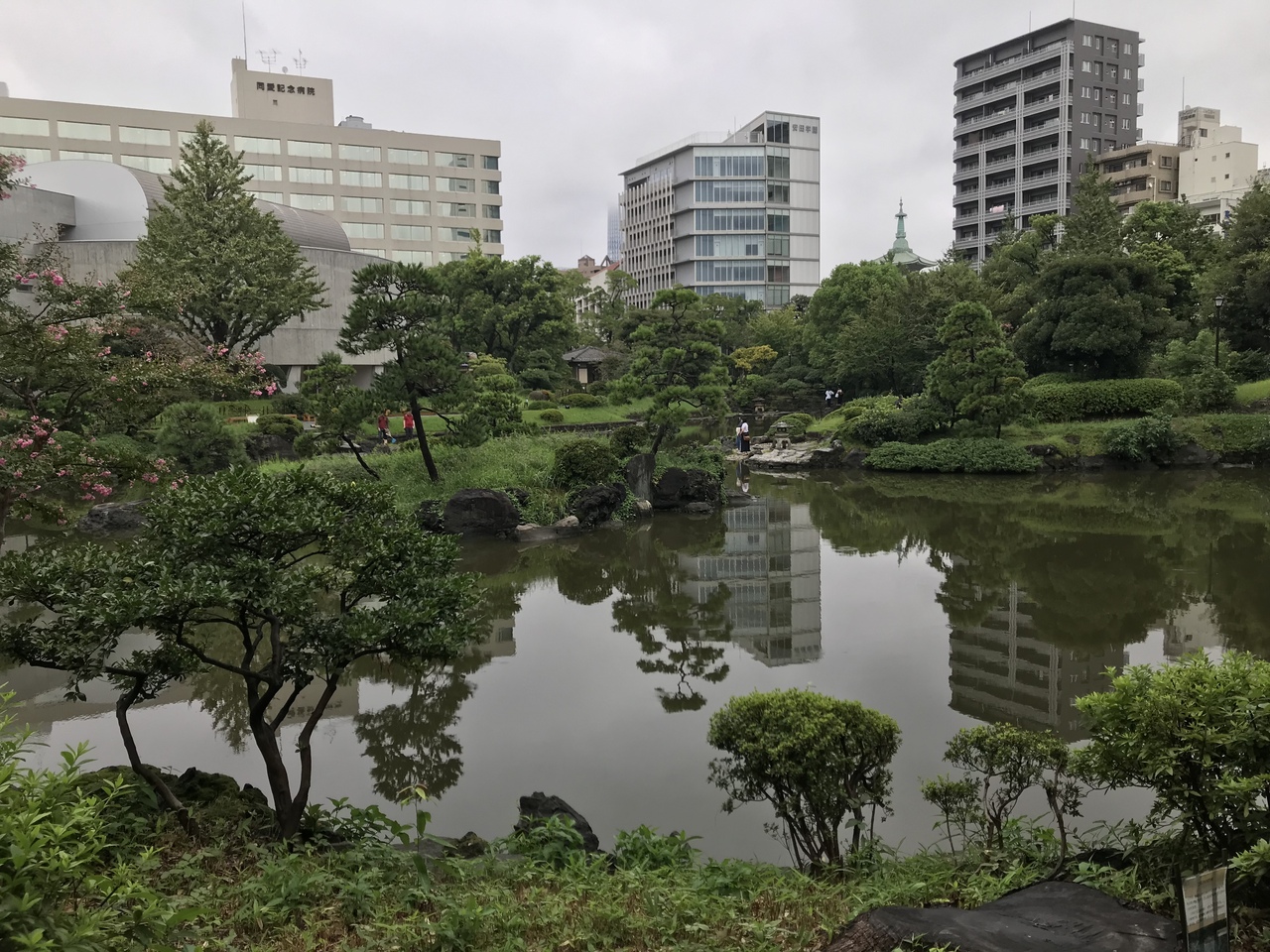 園内に入ると中央に大きな池があります。かつては隅田川の水を引き入れ、池が潮の干満によって変化していたそうです。