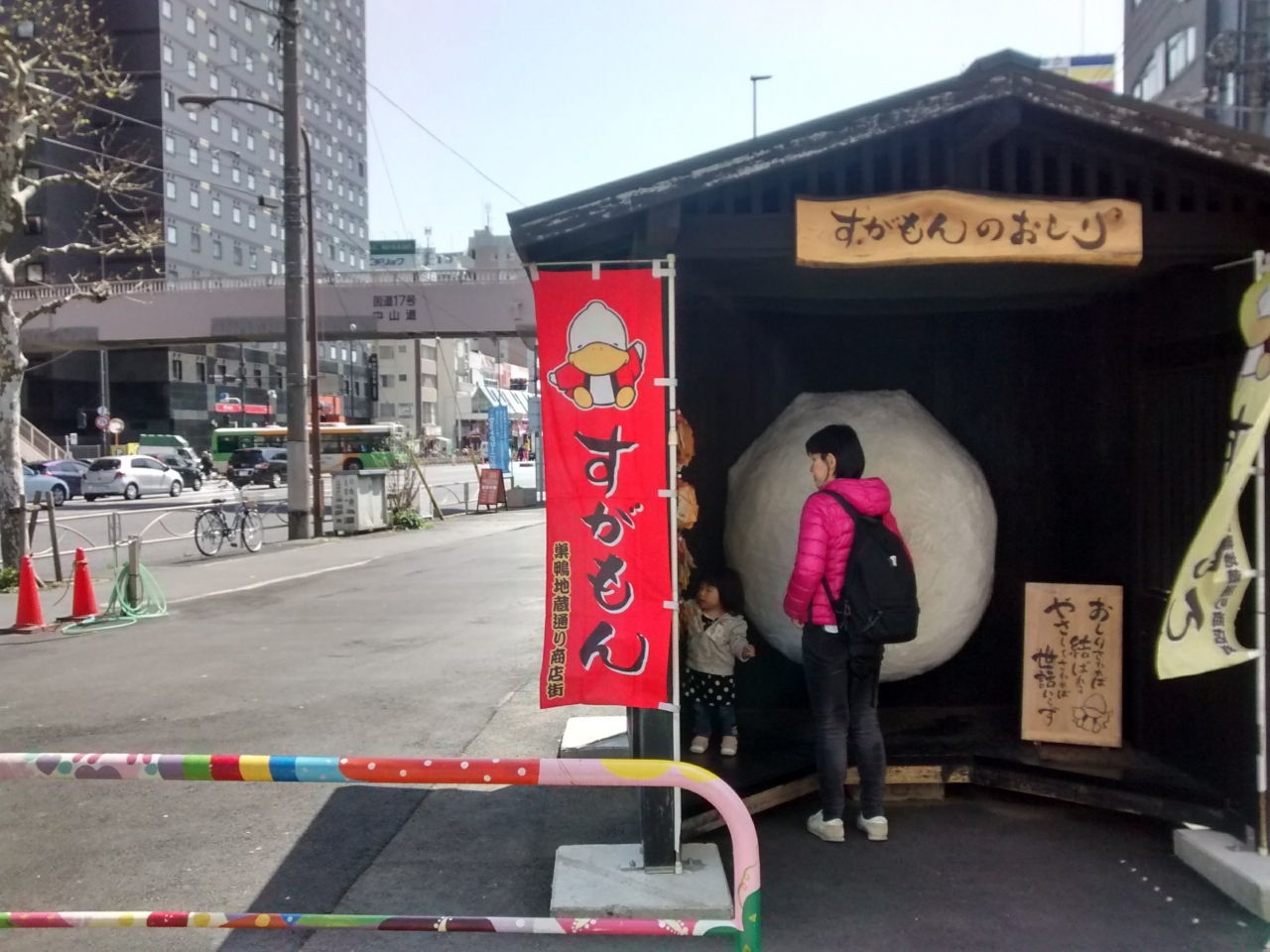 巣鴨駅を出て北へ歩くと、すがもんのおしりは、巣鴨地蔵通商店街の入り口にあって、分かりやすいです。すがもんのおしり自体は、ぬいぐるみの生地で、すごくふわふわしています。せっかく巣鴨を訪れるなら、絶対見逃せない観光アトラクションだと思います。