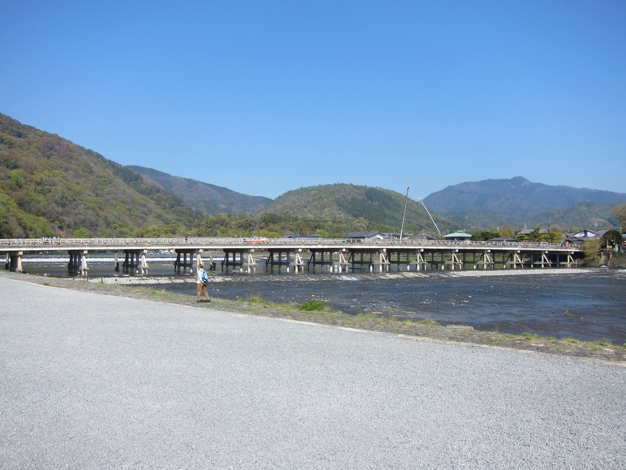緩急嵐山駅から嵐山に向かう時に渡る駅で、向こう側に山の風景があり、とても風情のある嵐山を代表する橋です。以前はお店が多く、ごちゃごちゃしてたけど、今は落ち着いた雰囲気に戻った様です。紅葉の衣綺麗なので、お薦め