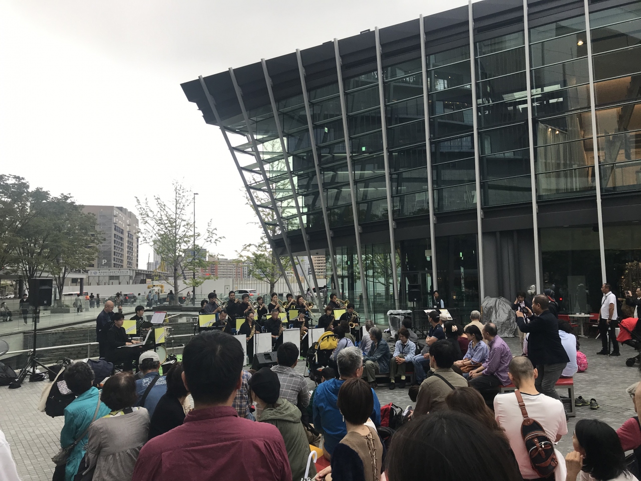 土曜日だったので、吹奏楽の演奏とかしてて賑わってました。噴水のみどりのクマはラグビーの服を着ていて時勢を反映してました。ハイネケンでフライドポテトを買って外の席で吹奏楽聞きながら食べましたが、あんまり美味しいポテトじゃなかった。