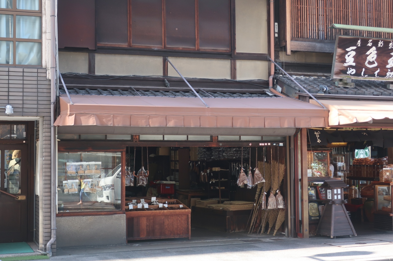 京都の三条大橋の東側たもとの三条通りに面した所に看板も出ていない昔ながらのお店が内藤商店です。棕櫚を使った、たわし、ほうき等を扱う江戸時代に創業した老舗で、特にたわしに関しては見慣れた楕円形の物、ねじれ方の物から円筒形の物まで沢山の種類があります。値段も決して高くはなく(ほうきは高い)、ここでしか買えない物もあり、実用的なお土産として使えます。