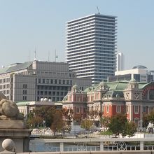 中央公会堂と中之島バラ園の間にある橋です。南側に大きなライオン像があり、ライオン橋とも言われています。橋の上からは西には中央公会堂が綺麗に見えます。東側にはバラ園があり、春と秋にはバラが見事です。川沿いのオシャレカフェでくつろぐ人びとを眺めることもできます。