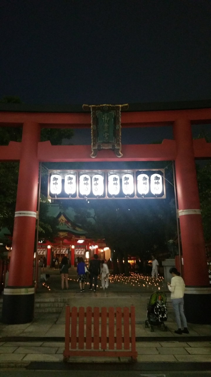 御霊神社の秋祭りに行ってみました。境内にろうそくの灯りをたくさんともしていてとても幻想的でした。
