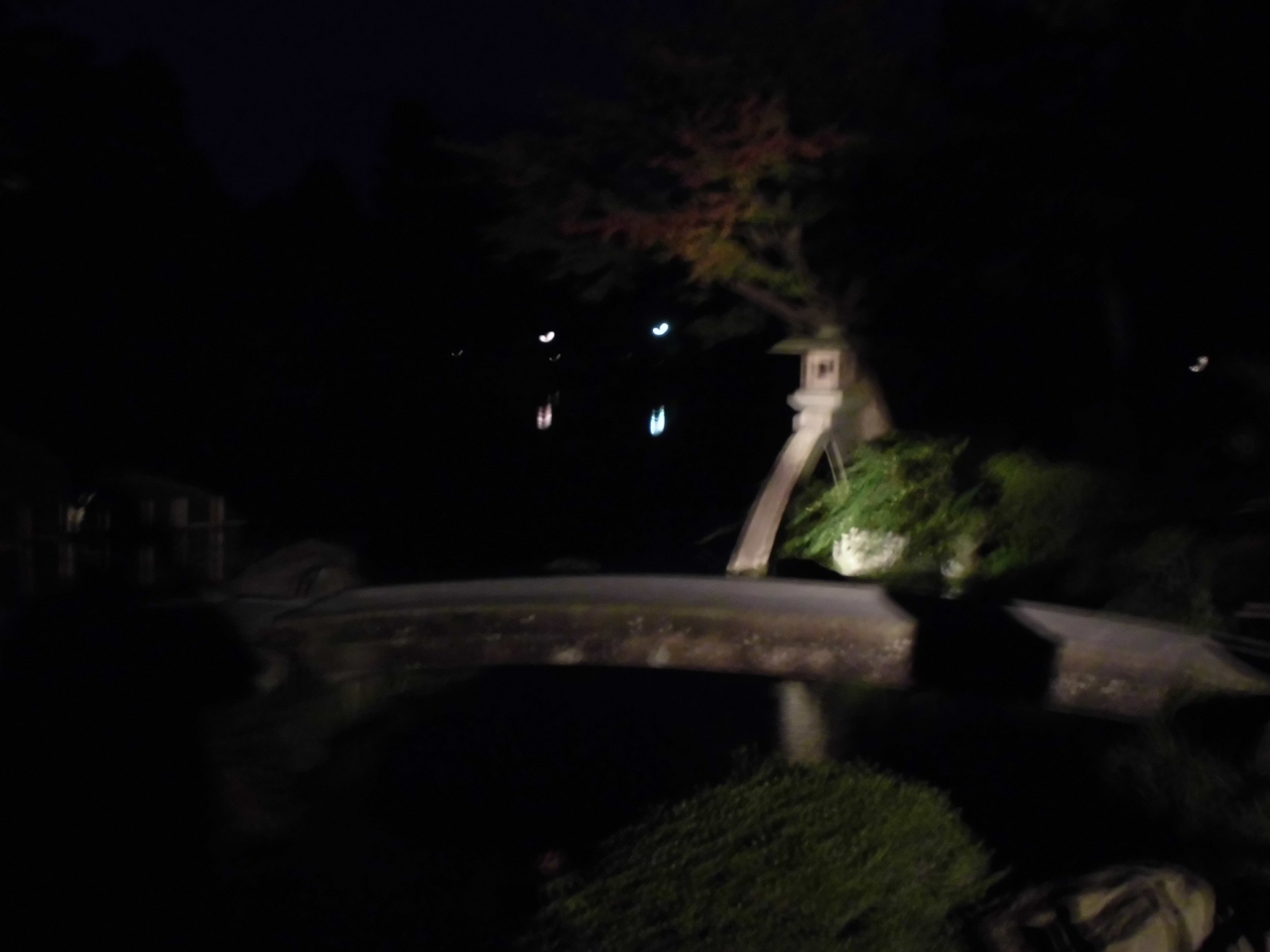 兼六園の市役所側から入ったところからすぐにあります。虹橋の奥には徽軫灯籠と言われる灯籠があり、説明板でも2つはセットになっています。「この巧みな意匠が兼六園を象徴している。」と書いてあったことからもわかるように、兼六園でも重要なモニュメントです。