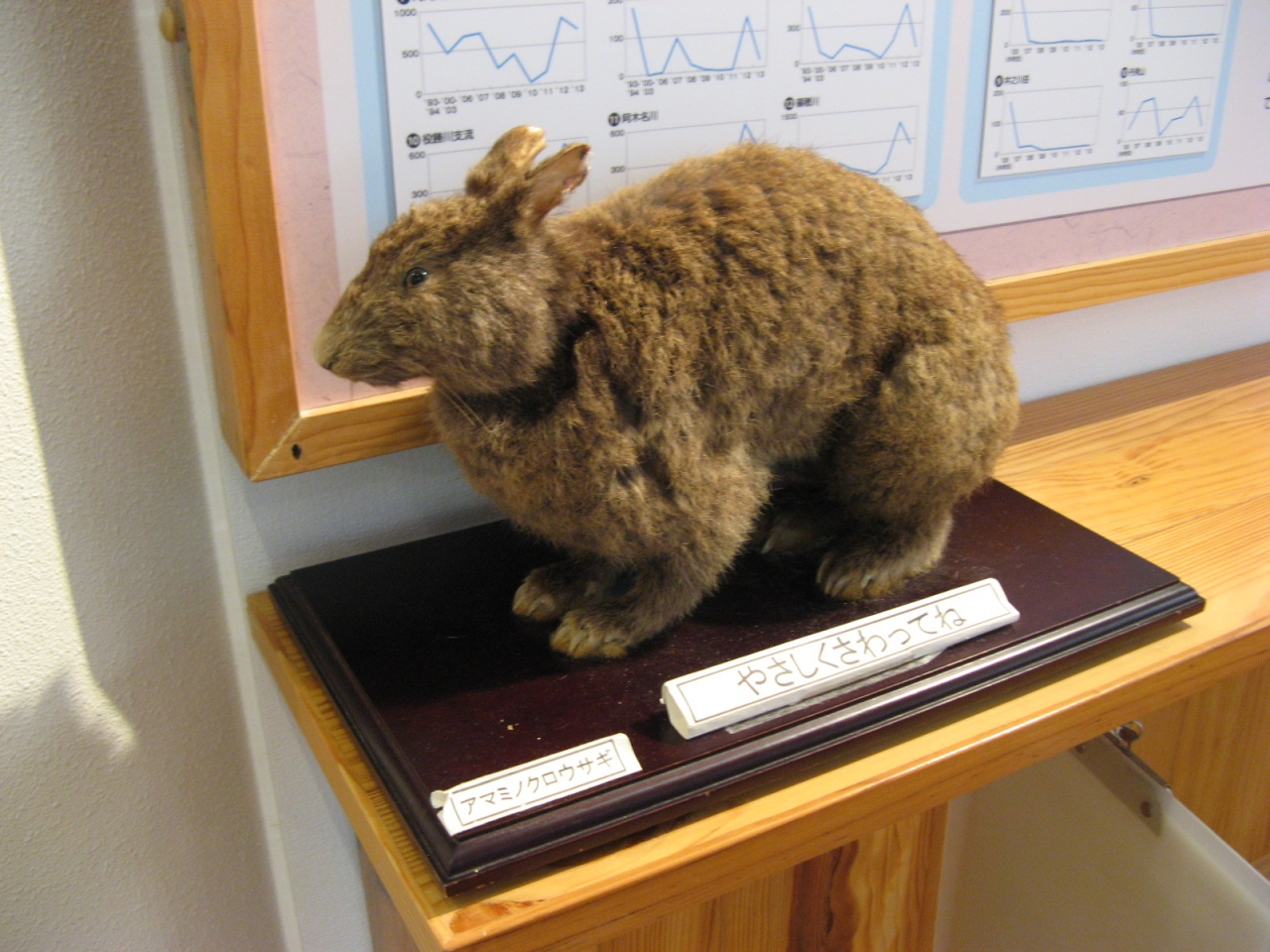 アマミノクロウサギの剥製は触ることもできました