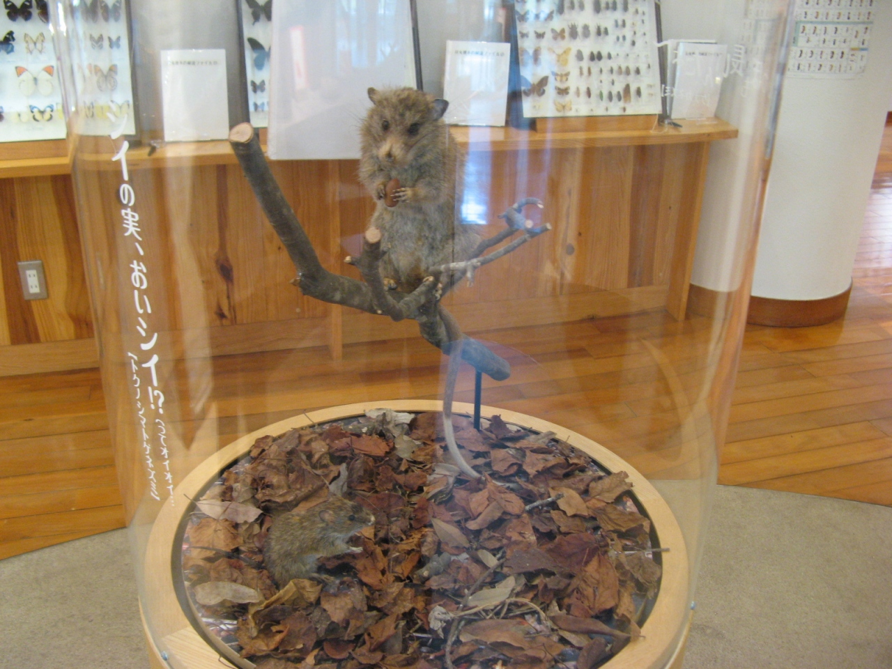 アマミノクロウサギやハブ、マングース、野鳥など奄美群島の島々に生息する生きものたちの剥製や昆虫標本がありました。アマミノクロウサギやマングースの剥製は触ることもできました。