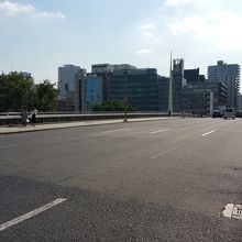 日本一の長いことで有名な天神橋筋商店街を南に抜けると「天神橋」があります(おそらく名前は橋が先でしょうね)。4車線の南向き一方通行の広い橋です。途中で中州に降りることができます。西側は中之島公園です。東側はちょっとした公園になっていて、ガラスのモニュメントと決まった時間だけ放水される噴水があります。都会のなかで空が広く、開けた感じのエリアです。