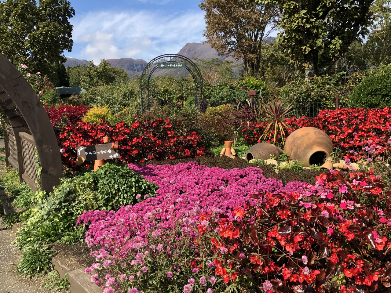 日帰りバスツアーで訪問しました。秋晴れで、サルビアとマリーゴールドが満開で大変美しかったです。コスモスは、長雨と台風で生育が今一つで残念でした。くじゅう連山は紅葉が始まっており、それも美しかったです。自由時間が1時間しかなく残念でした。