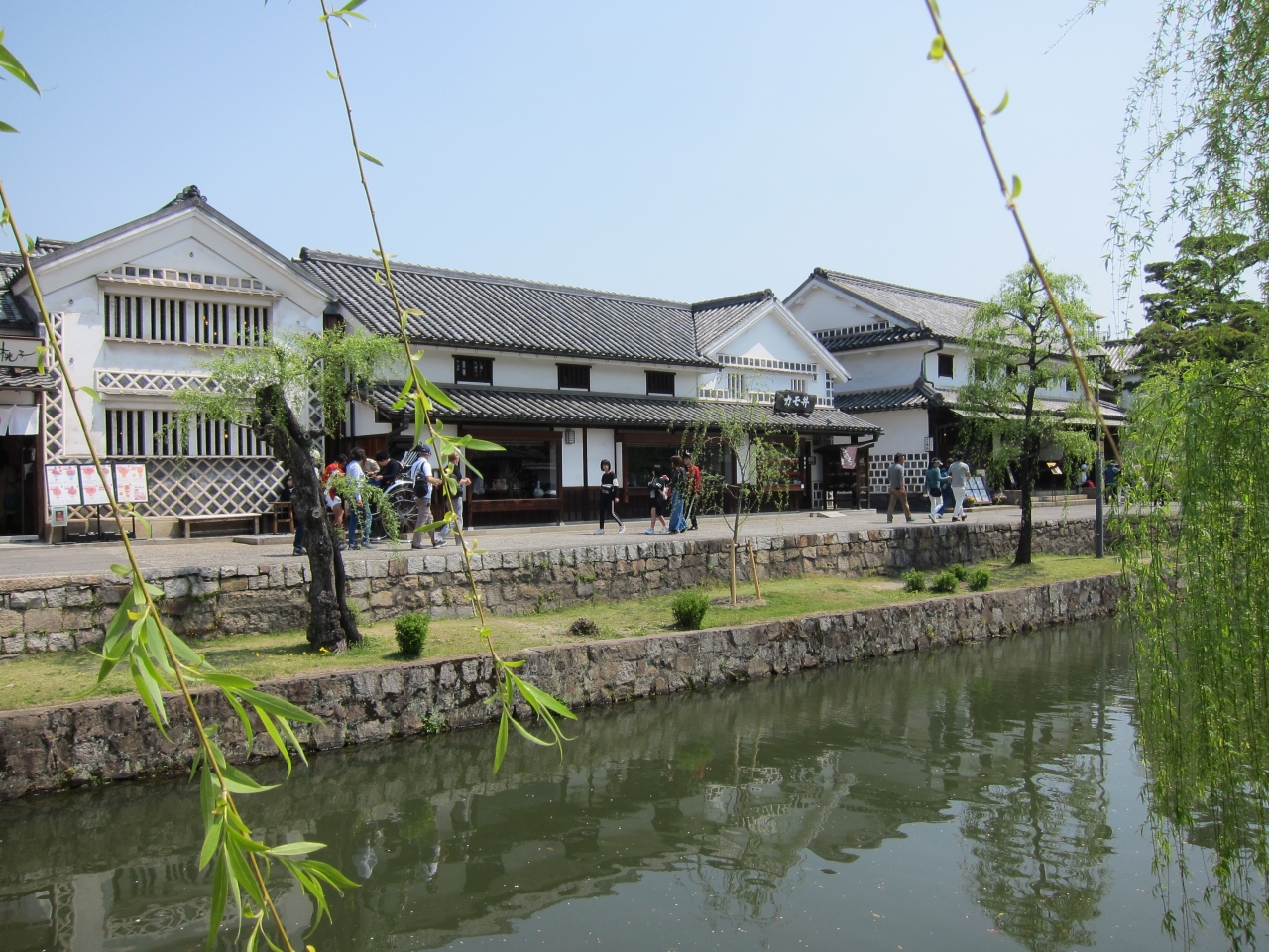 江戸時代に商業の街をして栄えた倉敷の、古い町並みが残っている川沿いの地域です。