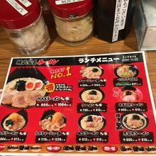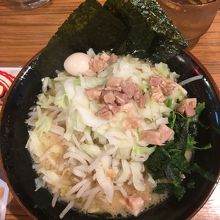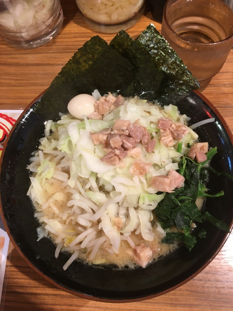 数あるメニューの中で迷いましたがベジタブル家系を注文。ほうれん草、ネギ、もやし、細切れチャーシューが程よい感じに散りばめられていました。食べはじめ麺になかなか辿り着けなく、麺が入ってませんでした。メニューを見ると麺をプラス出来ます、と書いてありました。麺なしでもそれなりに美味かったですがお腹があまり満たされませんでした。