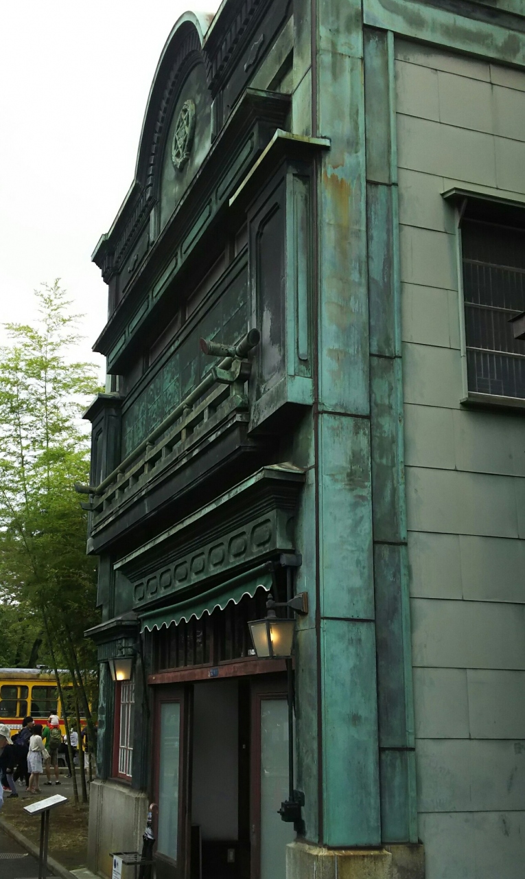建物は正面から見ると立体的に見えますが、横から見るとほぼ平坦でした。うまく造られているなと感心してしまいます。銅板が錆びて青くなっているのが、なかなかよい味が出てるなと感じました。