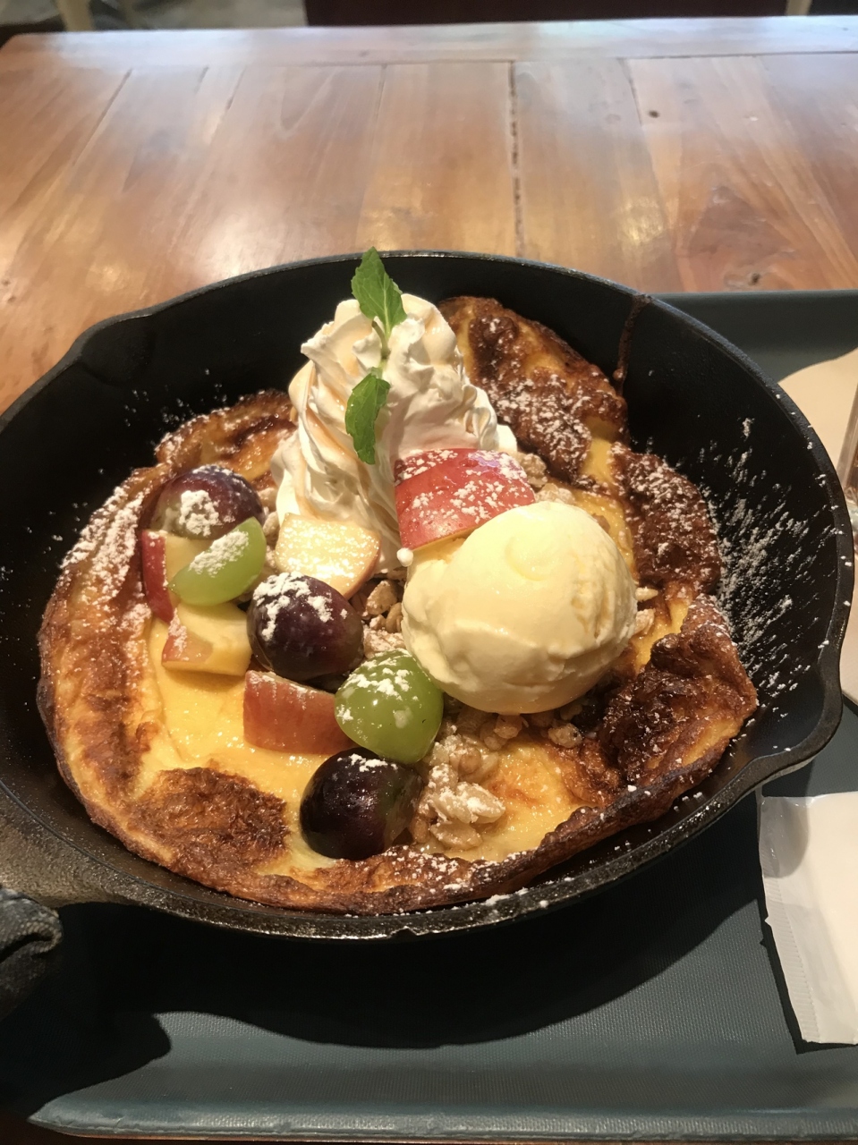 ラゾーナ川崎の4階フロアーにある、パンケーキ専門店になります。季節のパンケーキは、ぶどうがマスカットにピオーネやクルミに、りんごなど、秋のフルーツが散りばめられています。アイスクリームにホイップが多めです。