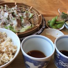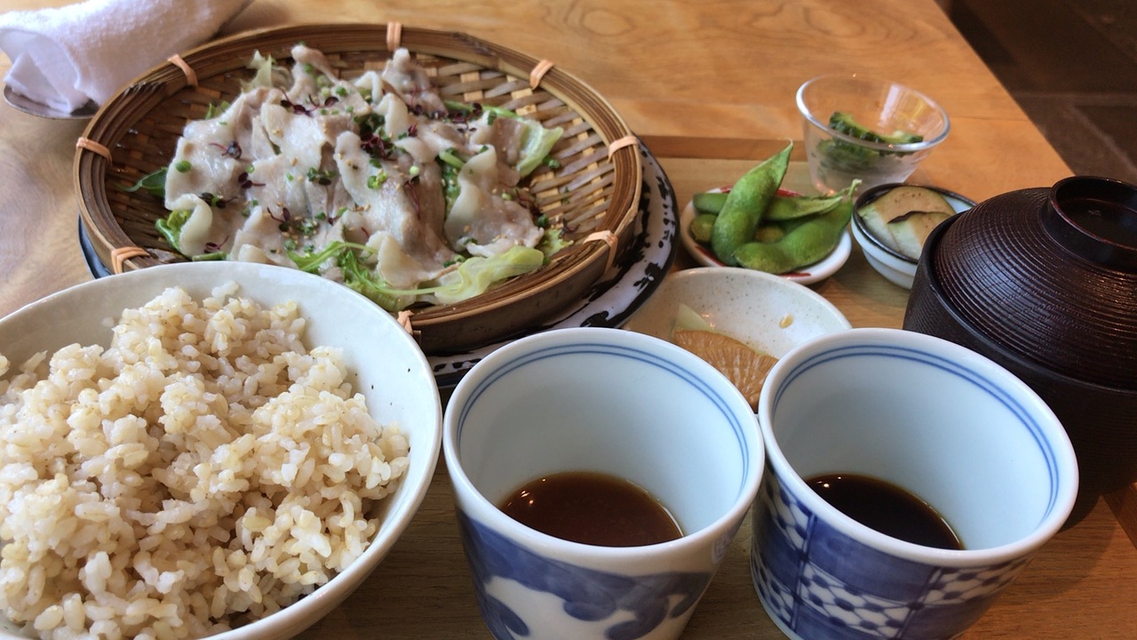 窓が大きくて開放感があり、清潔感がある店内です。野菜中心のヘルシーメニューが多く女性客が多いです。ランチはご飯が玄米で野菜たっぷり。見た目もきれいで美味しかったです。IDも使えて便利です。夜も来たみたいです。