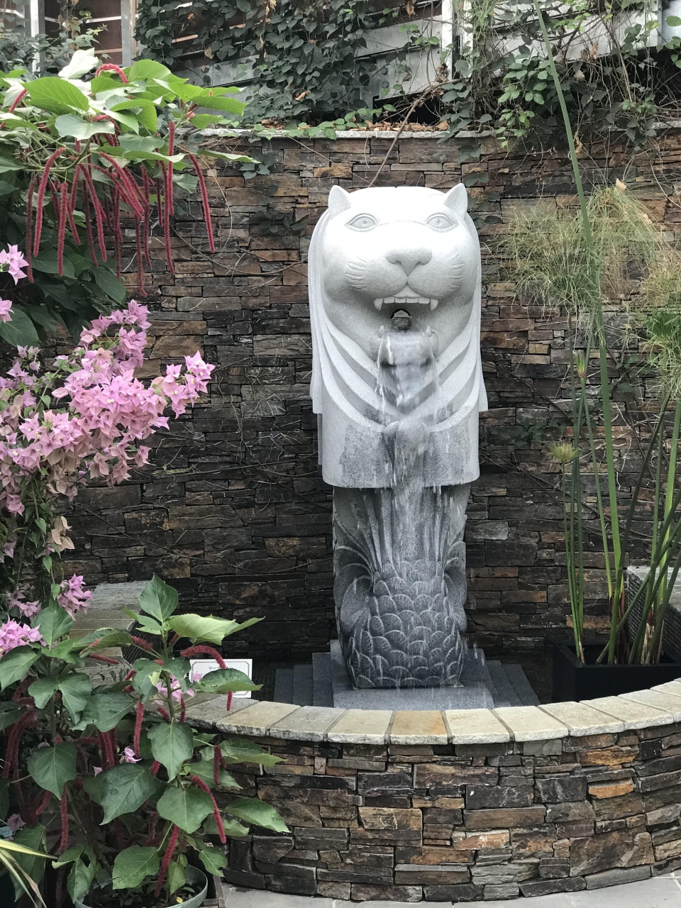 植物は綺麗に手入れされていますし、温室もなかなか立派なのがあり、マーライオンのような像から水が出ているのもありました