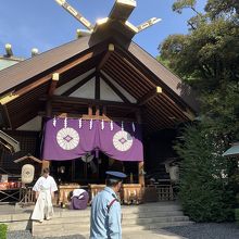 敷地は広くはないですが、参拝客はとても多かったです。縁結びの神様ということで、若い女性が多かったです。私たちも参拝して御朱印を頂きました。