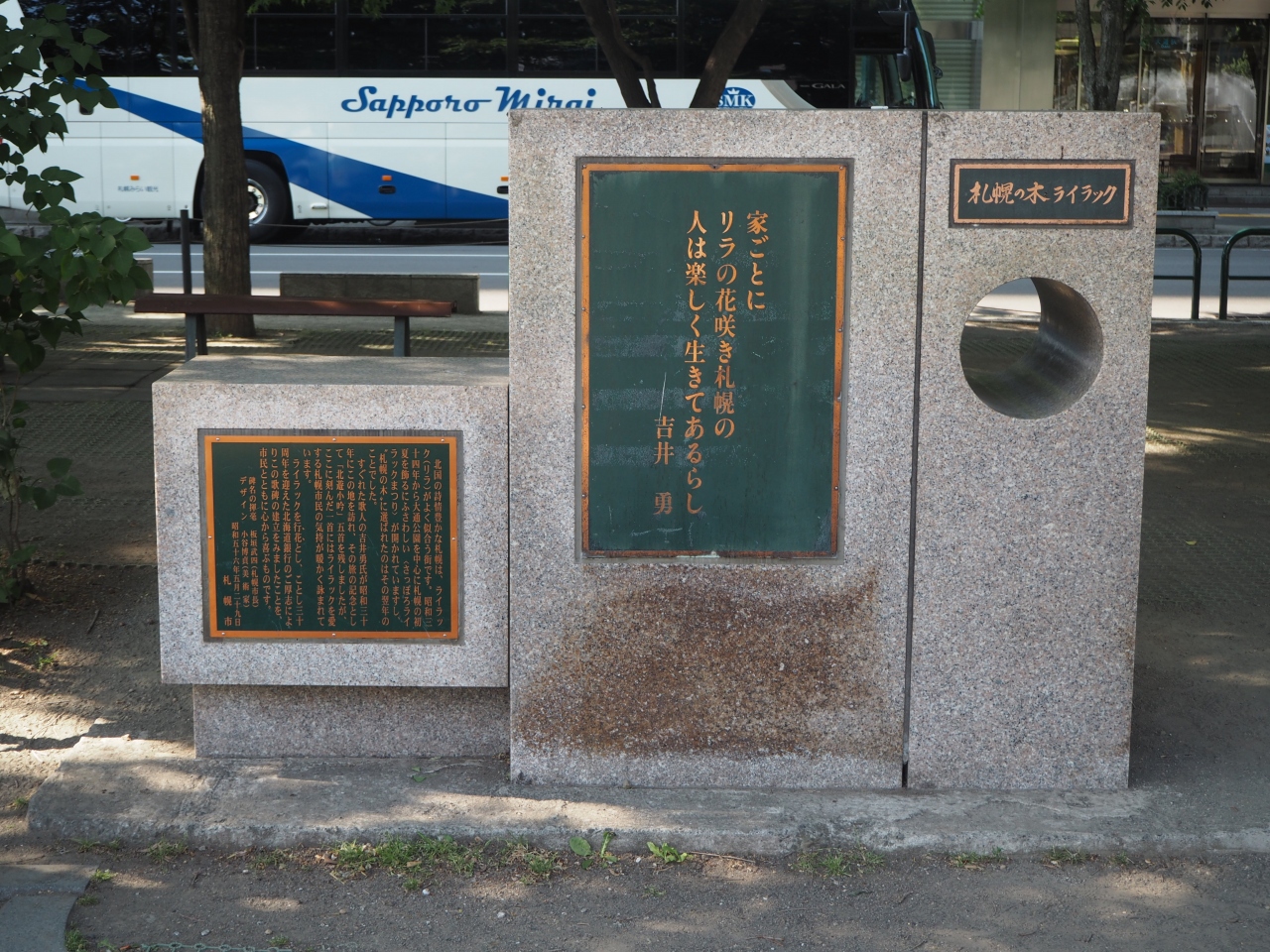 札幌の大通公園の4丁目に「札幌ライラック」の歌碑があります。木々の下に歌碑はあり、歌碑には吉井勇氏の歌も書かれています。1960年にライラックが札幌の木になっていますが、歌碑が建てられて数年後のことのようです。この歌碑が札幌市の決定に影響を与えたのかもしれません。やはり北海道に来るとライラックは北の木という感じはします。