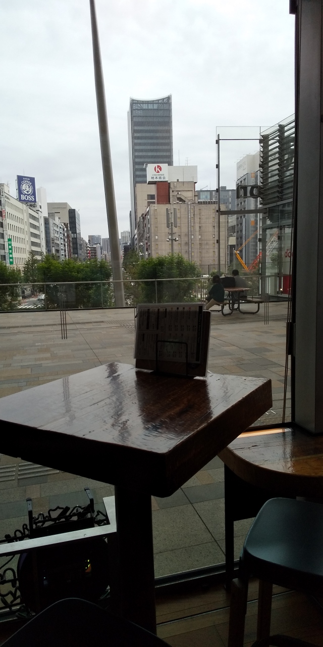 東京駅の八重洲口、バスターミナルの上のテラスは開放的で夜景も楽しめそう。