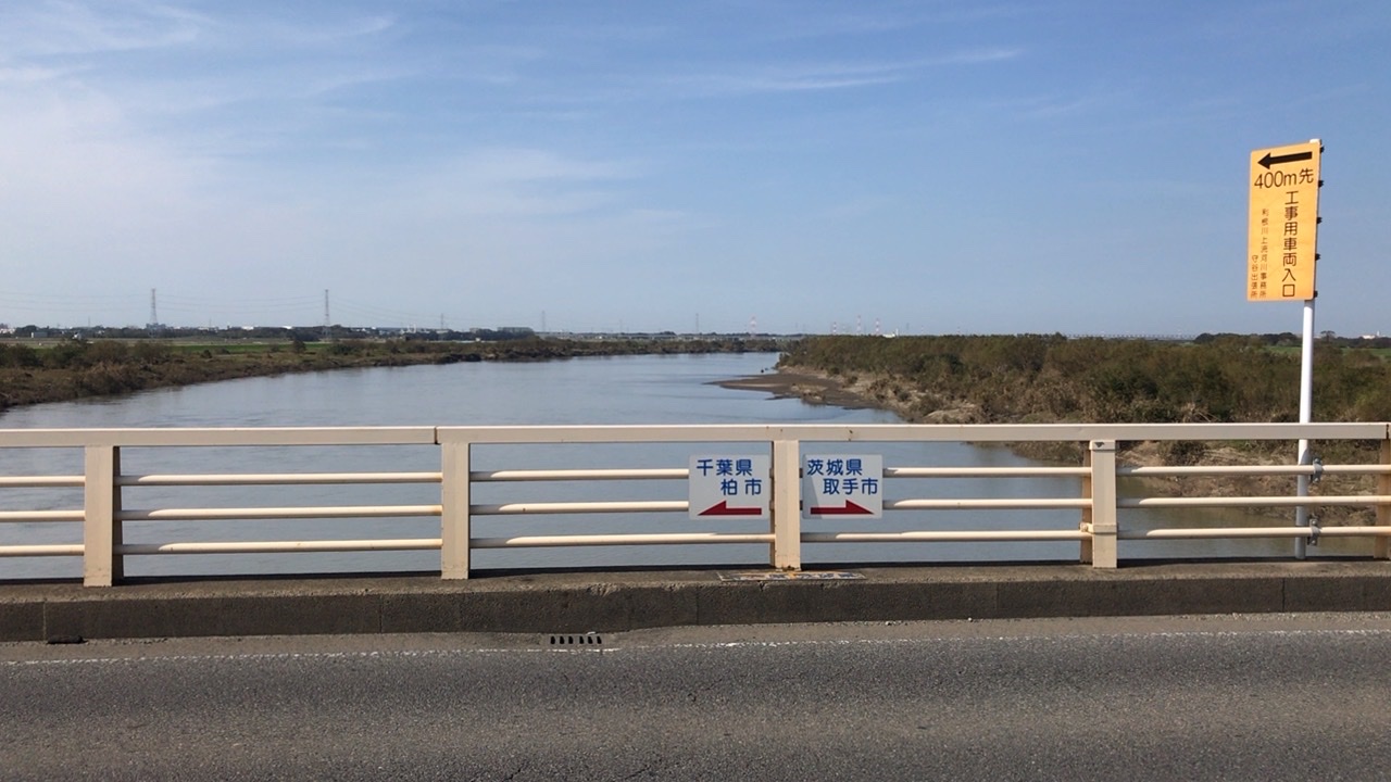 新大利根橋をジョギングで渡りました。ジョギングで渡る身にはとにかく長い橋に感じました。利根川は穏やかに流れていましたが先日の台風や大雨の影響か、川岸が大きく崩れていたり大量のごみが流れついていていたり、爪痕が残っていました。橋の中間地点辺りには茨城と千葉の県境の標識もありちょっとした記念になりました。