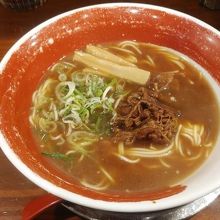 スープは濃い目の味でやや甘みを感じる醤油味。麺は硬さを選べる。