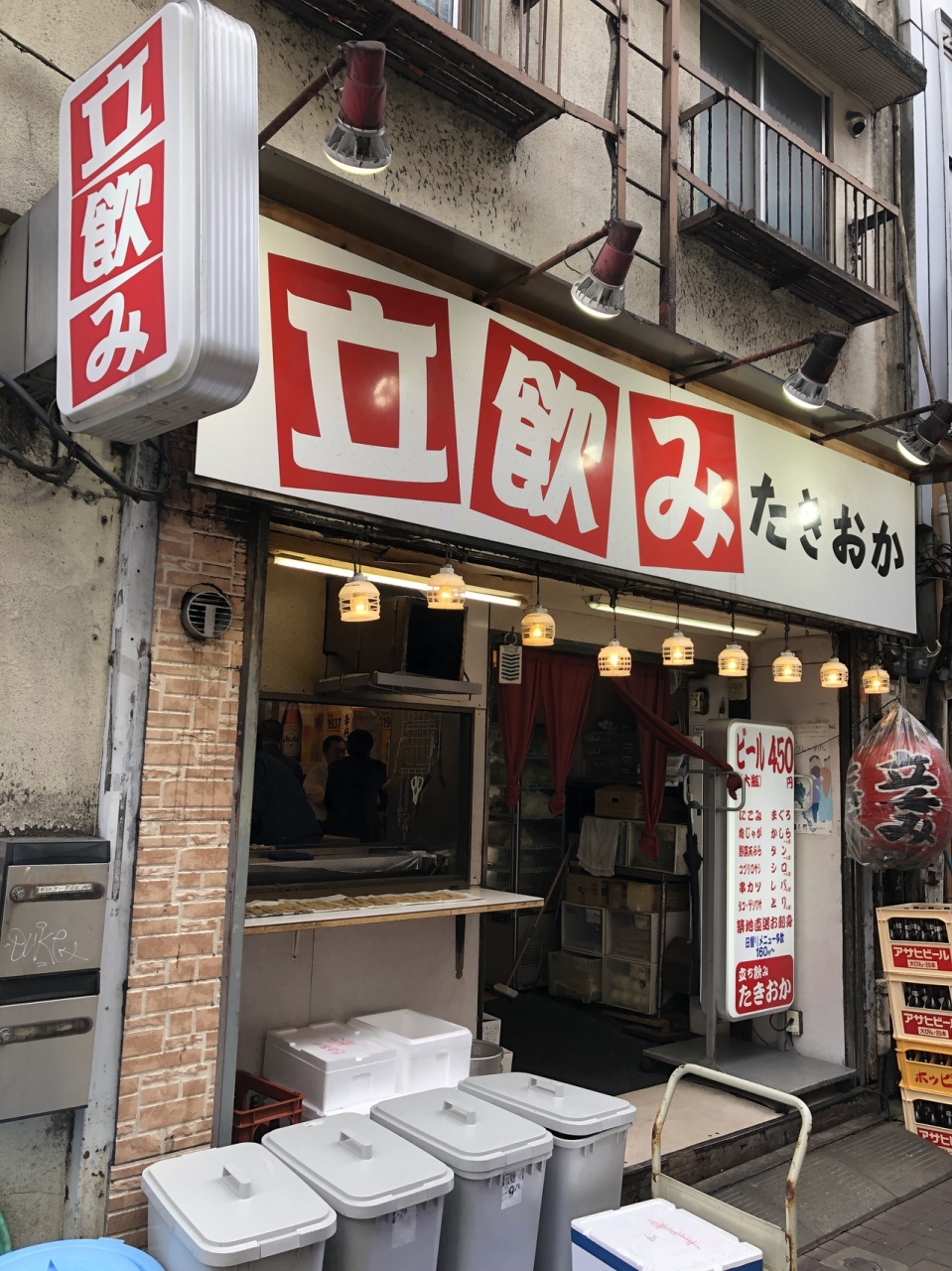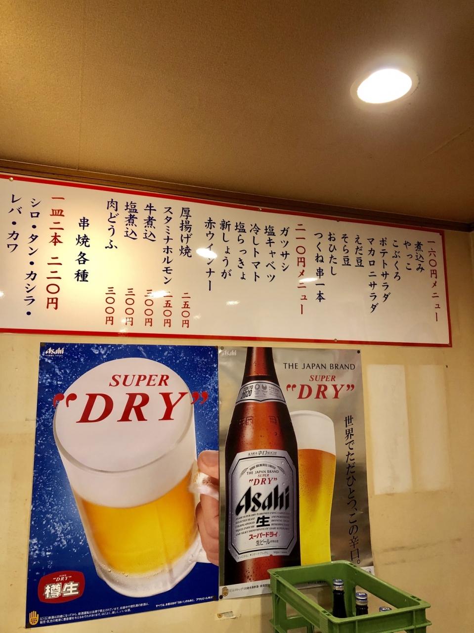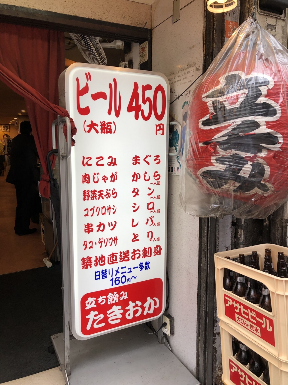 表の看板にはビール大瓶 ¥450-…立ち飲みとはいえ驚異的に安い…これに惹かれたところもある