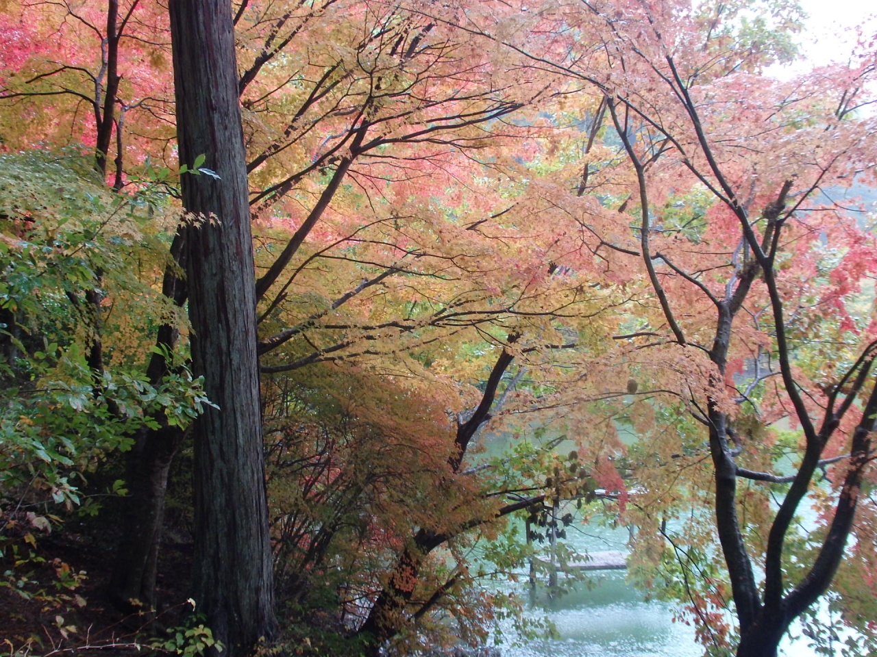 本日は石空川渓谷を歩き、精進ケ滝に行く予定でしたが、強雨のため南伊奈ケ湖に変更しました。櫛形山の中腹に位置し、県民の森の一部となっています。 湖面に映る紅葉がきれいですが本日は曇りのため映えません。 太陽があれば写真映えしますね。湖面を一周できるので、周回してみました。紅葉の裏から紅葉を見ると明るい湖面をバックに紅葉が見え見事なコントラストを見ることが出来ます 晴れていたら、素晴らしい紅葉が見られるでしょう。ハクチョウが1羽、カモが数羽浮かんでいました