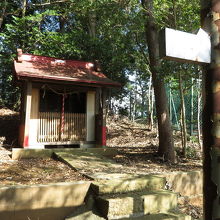 階段を登ると、小ぢんまりした社、境内、錆びた鳥居があり、由来が書かれた立派な碑もあります。ちょっと想像していたものとの落差でビックリしました。
