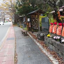 檜枝岐村の市街地、国道352号に面して並ぶ地蔵群。