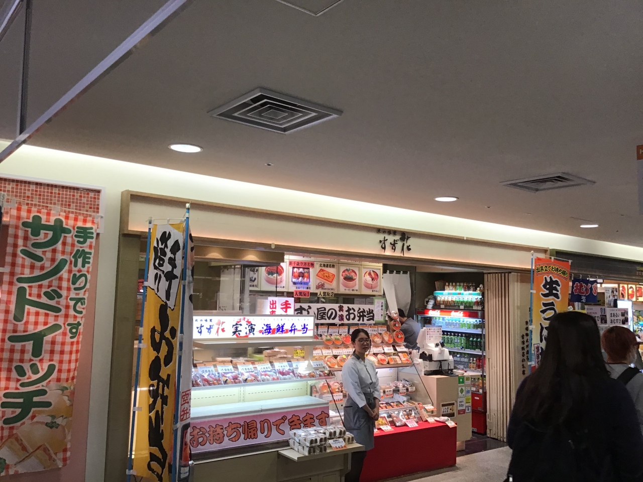 新千歳国際空港の国内線出発ロビー2階にあるお店です。北海道の幸が詰まったお弁当をたくさん売っています。お持ち帰りして機内で食べれるのがありがたいです。新鮮な海の幸が豊富に乗っているのでとてもおいしいです。