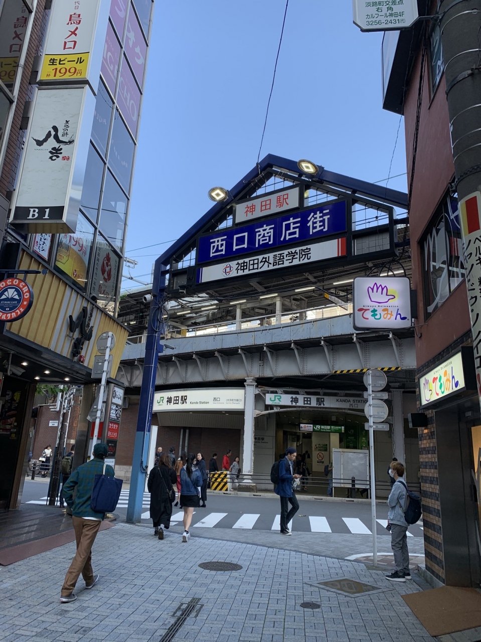JR神田駅から徒歩5秒。めちゃくちゃ近くにあります。ファミリーマートやサンマルクカフェもありますが、主にごはん処が多い商店街です。