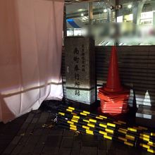 JR有楽町駅の中央口付近に墓石みたいな石碑があります。よく見ると取ってが付いているので何かの物置になっていて前に開くのかと想像すると興醒めでした。近くを工事中だったのか資材が置かれていましたが本来は横手に説明のプレートがあるのでそちらにある発掘当時の写真と説明文のほうを忘れずに見た方が良いです。