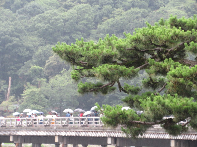 京都の嵐山に行きました。嵐山の有名な風景といえばこの渡月橋付近から見た桂川や山々の景色ですので、絶対訪問した方がいいとは思うのですが、今回は雨だったこともあって、人が多いうえに傘だらけで、立ち止まることもできず往復するだけになってしまいました。落ち着かないですが、景色はいいです。