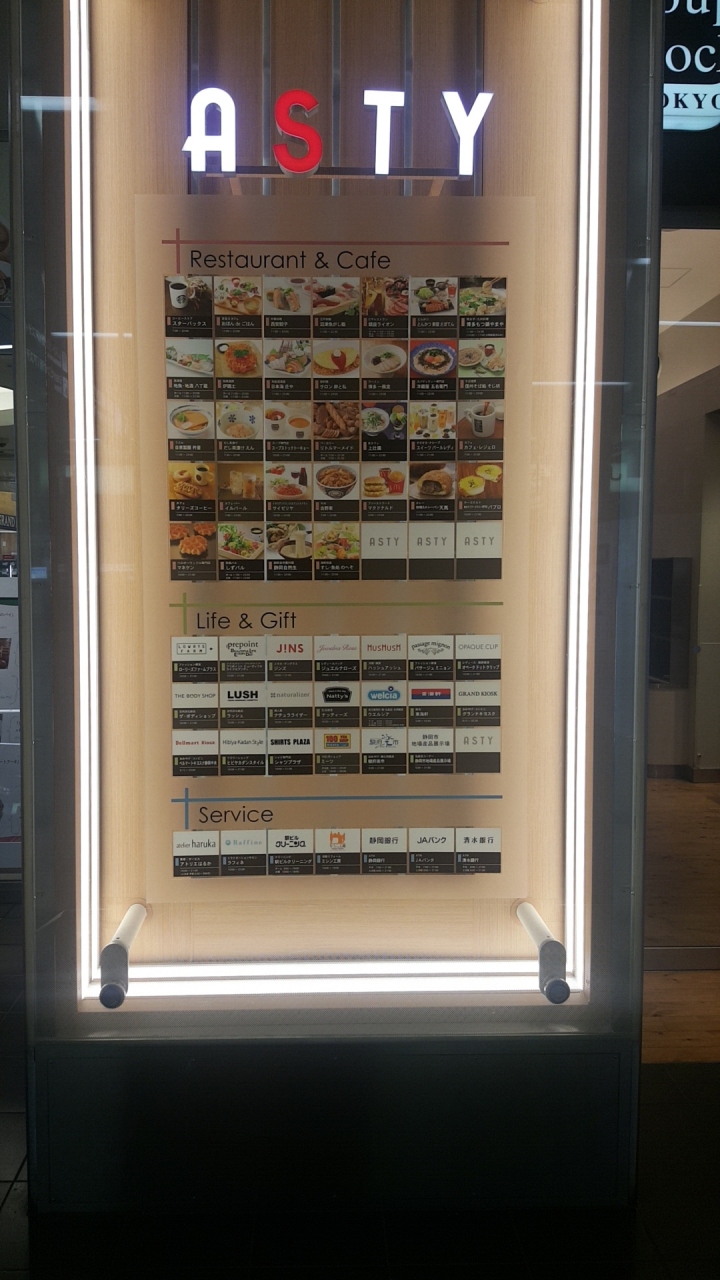 アスティ静岡はJR静岡駅外にある複合商業施設です。お土産ショップやレストラン、スーパーや居酒屋等あり新幹線乗る人だけでなくお土産を買う人にも喜ばれる品揃えがあります。食事だけの利用でも車さえ止められれば良いでしょう