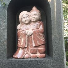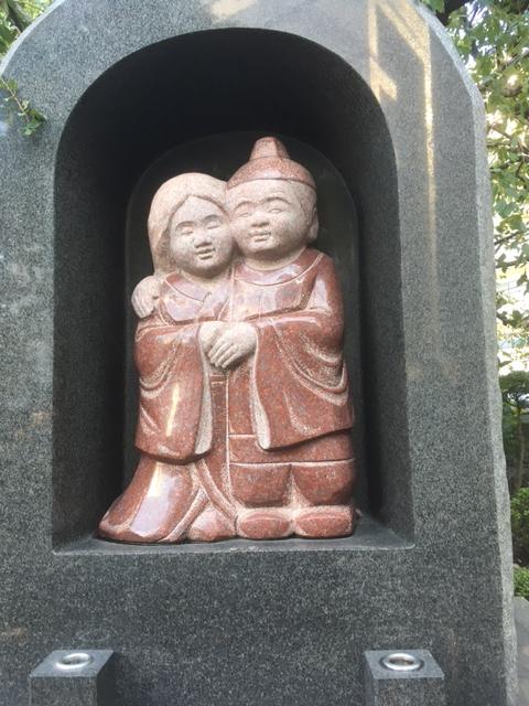 17世紀創建の浄土宗の寺院です。閻魔寺として有名ですが、ご開帳は年に二回だけだそうです。こちらの一行寺、かつて本陣が一杯になったときの緊急用の施設としても使われていたそうです。見どころとしては、境内の阿弥陀座像、そして写真の夫婦像です。男女双体道祖神のような像ですが、現代的な感じでとても微笑ましい像です。