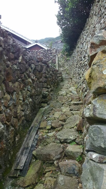 愛媛の宇和海に面した愛南町に旅行で行ったときに、友人に案内されて行ってみました。リアス式の海岸線に、内泊、中泊、外泊と順番に漁村があって、石垣の里は一番奥の外泊にあります。急傾斜の集落は石垣を積んで家が建っています。石墨作業はきっと大変だったと思います。