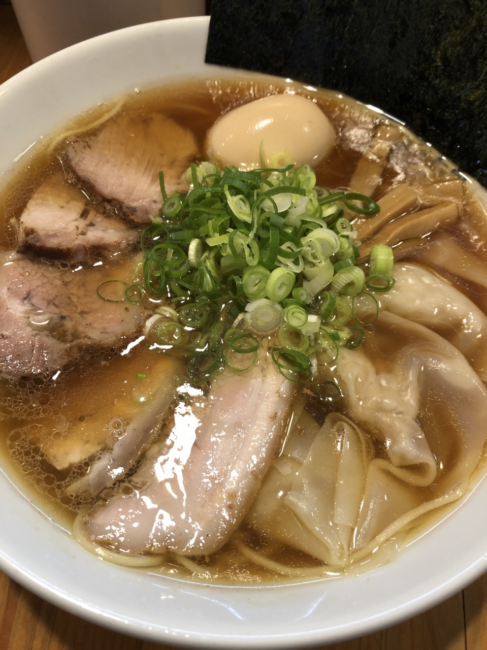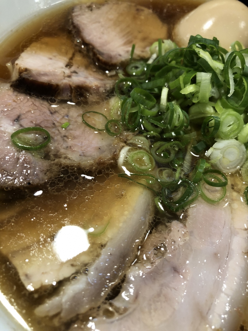 スープは 塩味もあるけど、今回は看板の醤油味を選んだ