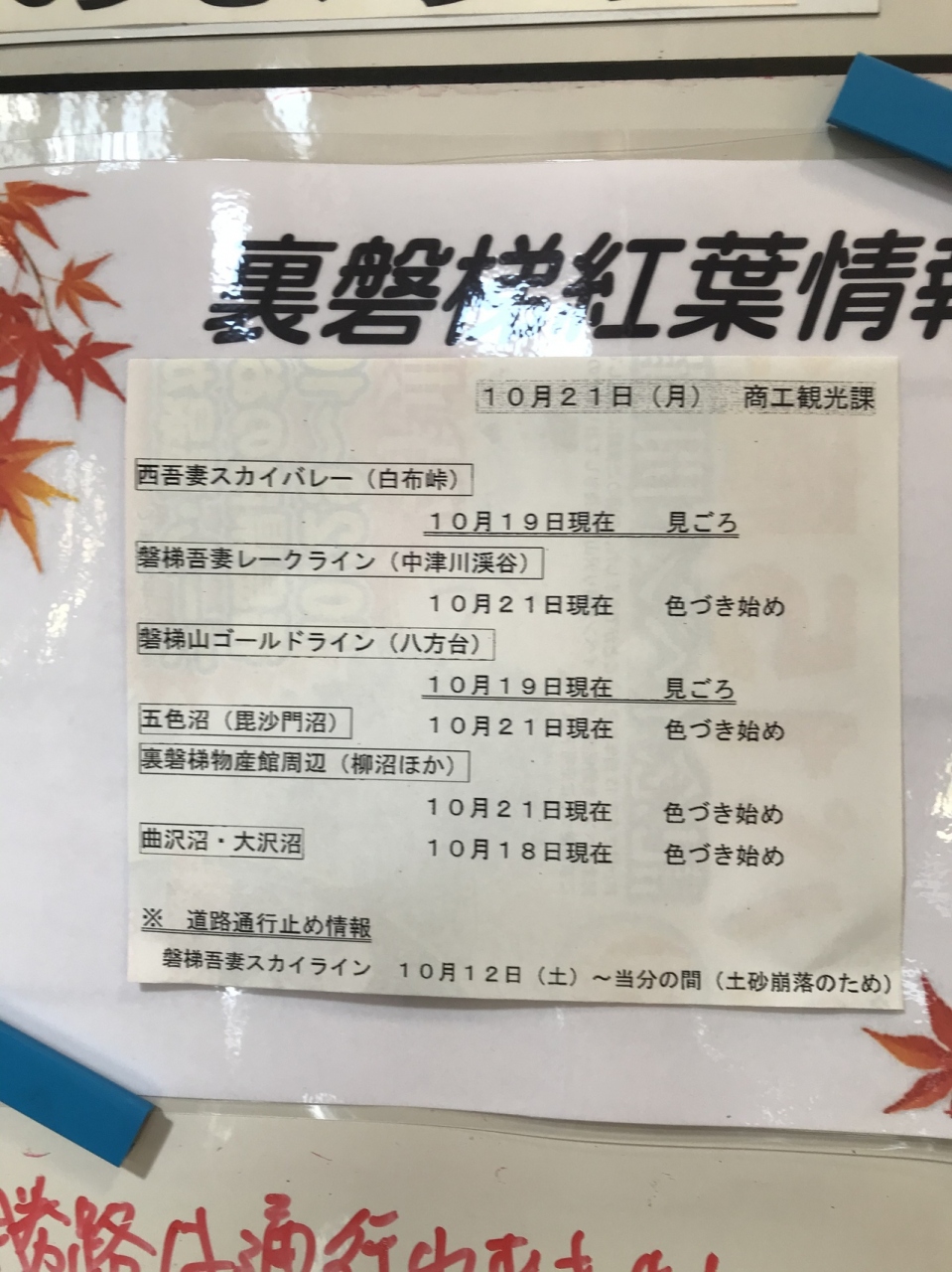 裏磐梯紅葉情報も見ごろをいつか案内してくれていて親切なステーションでした。