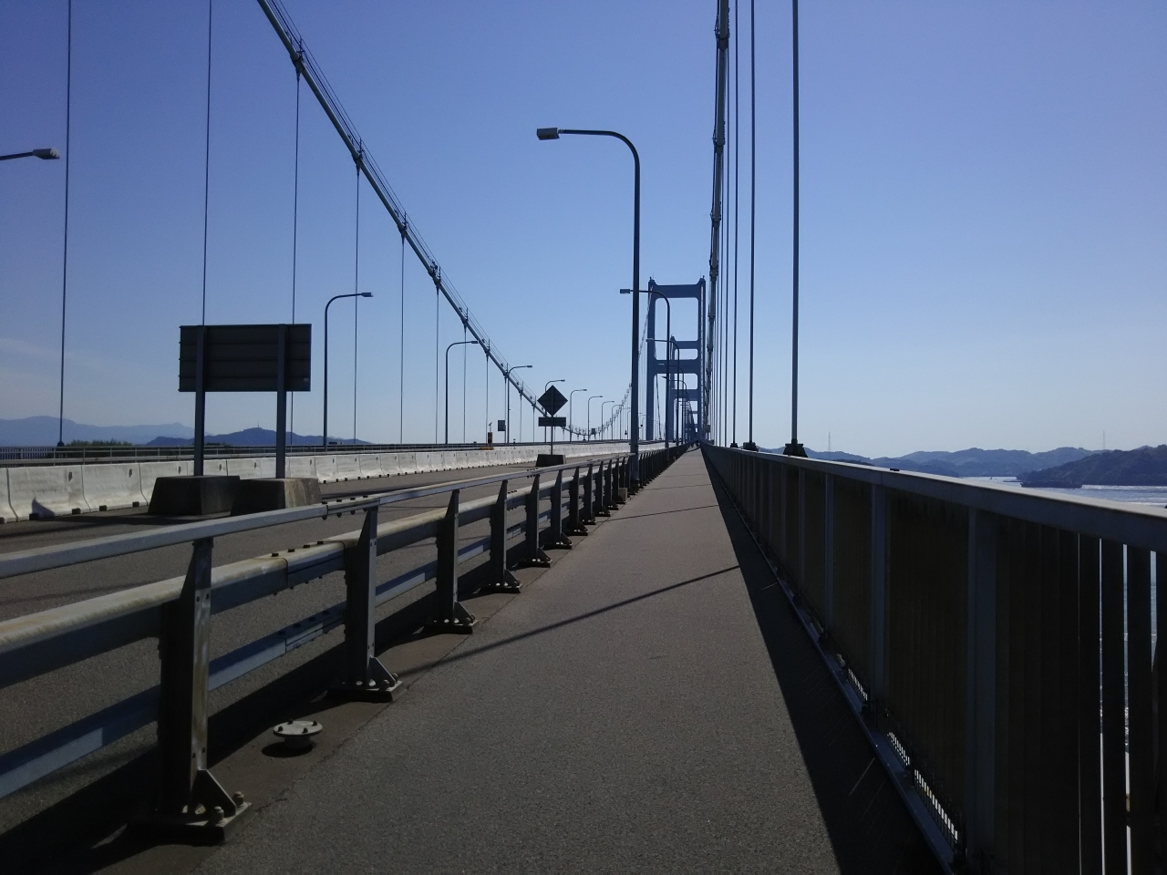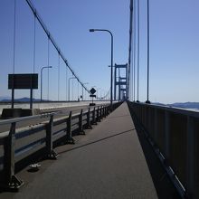 しまなみ海道の四国と大島を結ぶ橋です。途中にある馬島にも橋を掛けて約4kmをつないでいます。大きな橋なので、橋の中でも大きなアップダウンを感じることができます。自転車や歩いて渡ると来島海峡を下に覗くことができます。